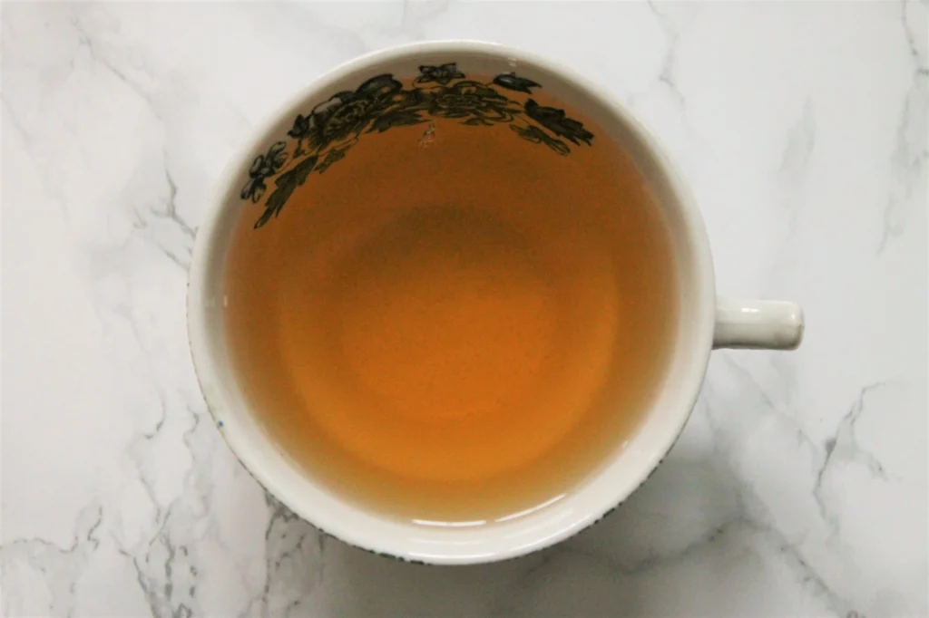 It brews gently, infusing the water into a soft golden-yellow ochre colour. Very inviting and almost completely clear.