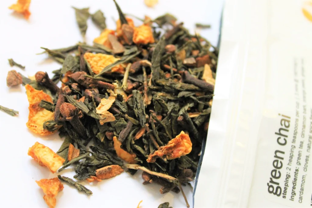 Adagio sent me a large box of teas to review in the run-up to Christmas. Tucked into the corner of the box was a 23g sample bag of Green Chai.