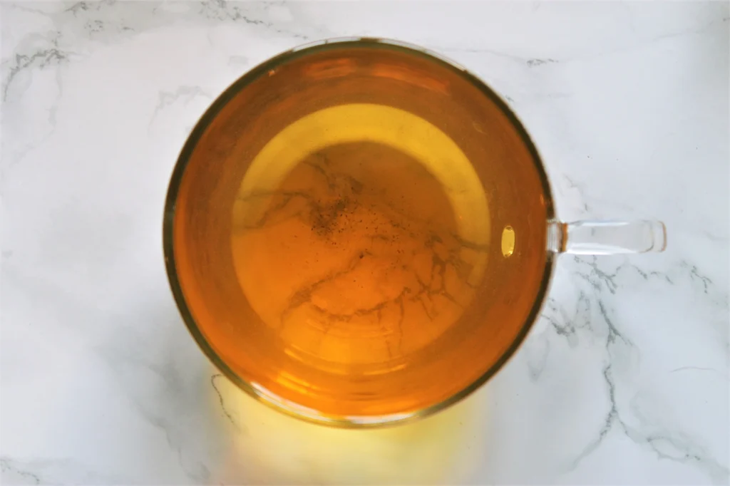 After nearly dipping my nose into the tea to get a good idea of the aroma, I take a sip. I’m not disappointed when it tastes bland and weak, because the aroma already told me as much.