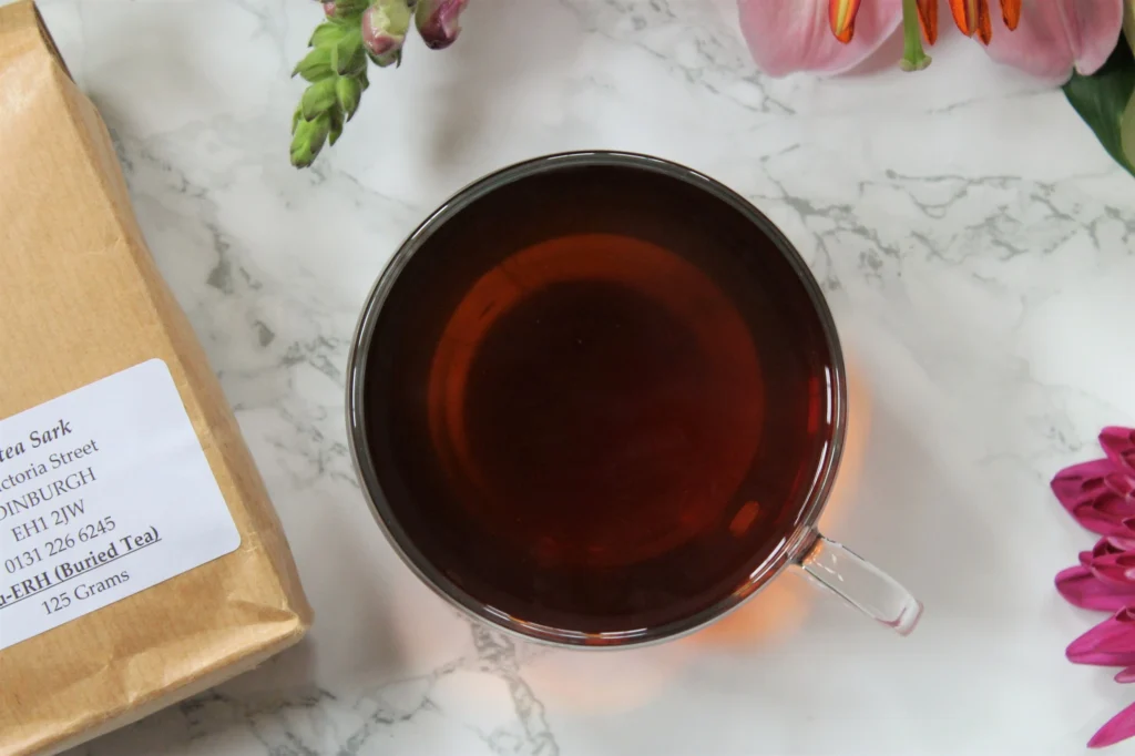 Thankfully, when it brews into a rich mahogany brown tea, the dung scent disappears completely. It’s earthy with rich oak notes, slightly smoky, and also slightly sweet in a freshly dug liquorice root kind of way. It’s not over the top in the slightest.