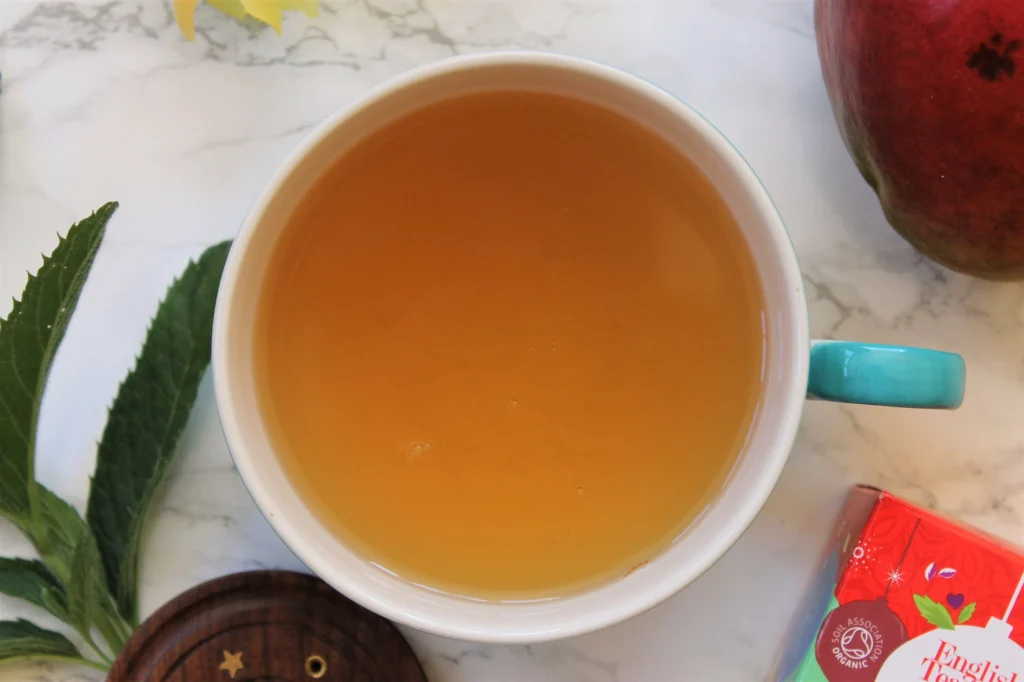Opening the individually wrapped teabag, mint is quite clearly the dominant note. It’s musty, like dried herbs typically are, and sweet like peppermint. There’s also a hint of tropical mango that adds a refreshing note to it. The aroma combination is reminiscent of a revitalising, minty cocktail. Best sipped by the side of a pool, not at Christmas time!